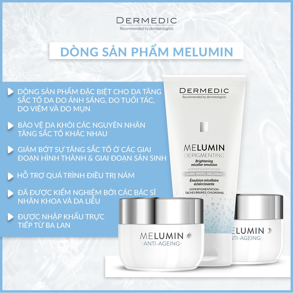 - Melumin™ Tristage Complex: Gồm Arbutin, Lightderm, Vitamin C, và Niacinamide – những thành phần giúp làm sáng da, giảm đốm nâu và ngăn ngừa tăng sắc tố.