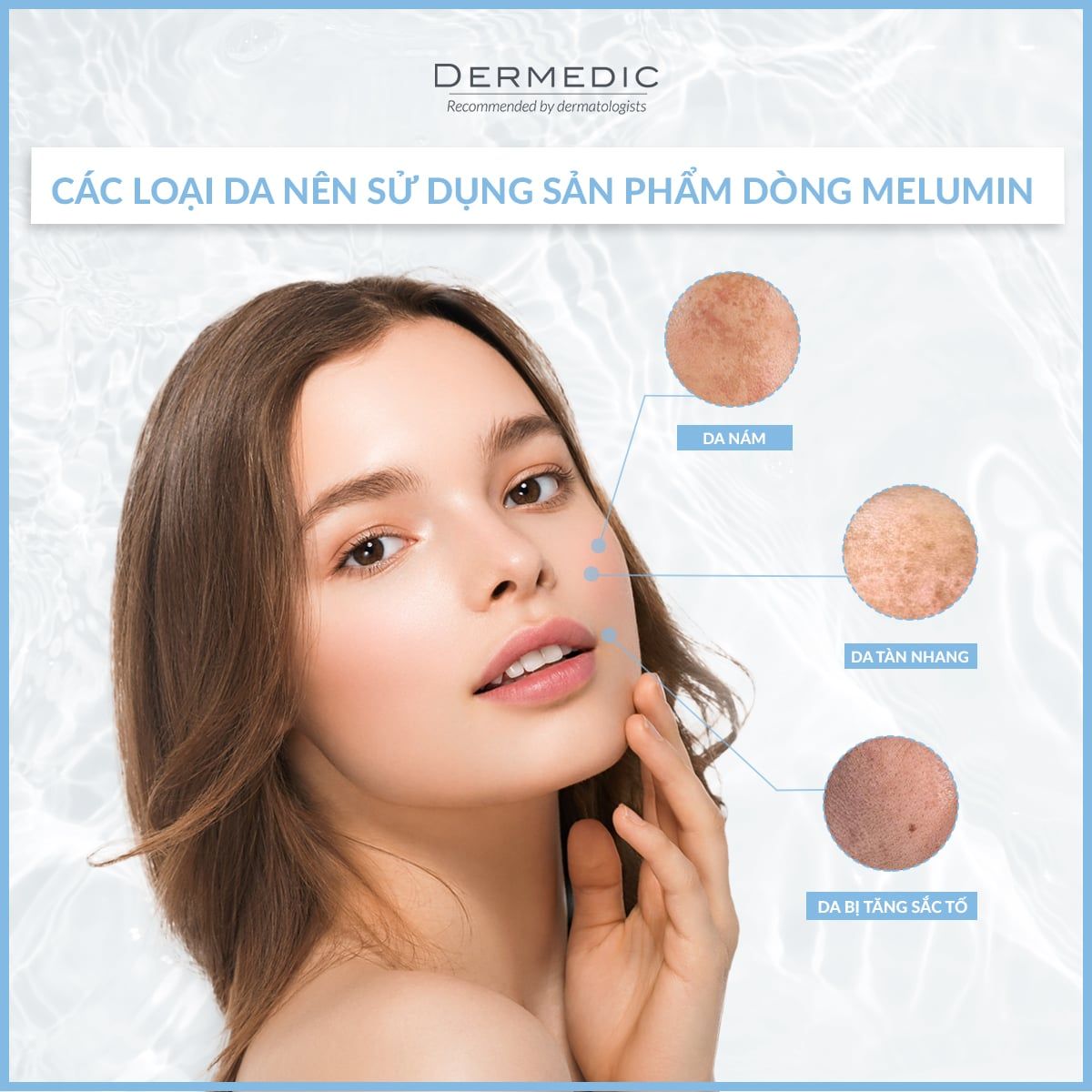 - Hỗ trợ điều trị tăng sắc tố: Phức hợp Melumin™ Tristage giúp điều chỉnh sắc tố da, làm sáng da và giảm thiểu các đốm nâu, nám và vùng da không đều màu.